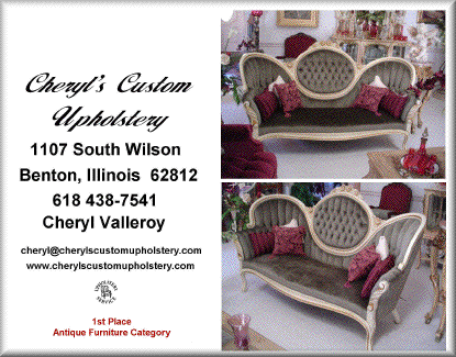 ~ 2004 ~ 2nd Annual Calendar Contest Upholsterers & Soft Furnishing Fabricators - Recovering The World. This sofa sits in the living room a very satisfied client in Mt. Vernon, IL, who has exquisite taste in decor, as evidenced in the background.
