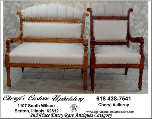 This sofa, believed to be from the late 1920's, won 2nd Place in the Antique Sofa Class. It actually opens up into a sleeper, and was completely refurbished from the frame up. It now graces my living room. :-)